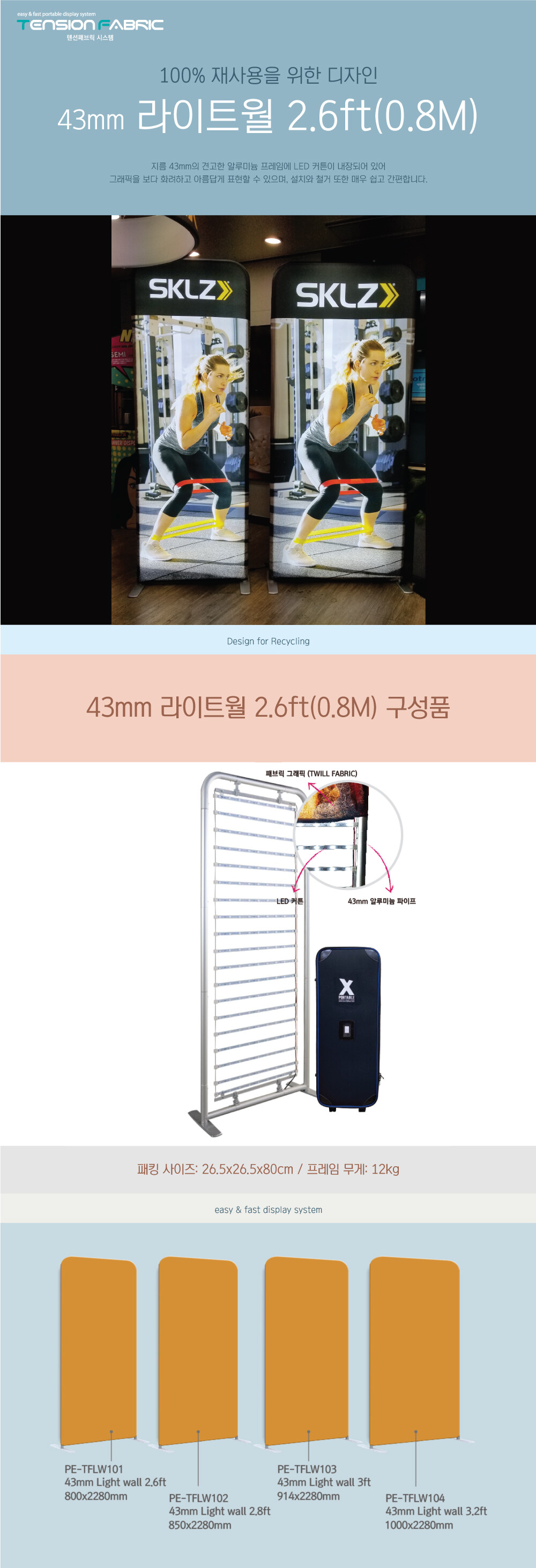 43mm light wall 2.6ft(0.8M) · LED 커튼 탑재 홍보 배너 스탠드 · 무공구로 설치 가능 · 혼자서도 운반이 가능한 경량 프레임 · 열전사 방식 선명한 해상도의 그래픽 · 용도에 따라 다양한 크기 선택 가능 ------------------------------------ 배송안내 · 모든 제품은 배송비 포함입니다. · 배송기간: 주문 시 문의